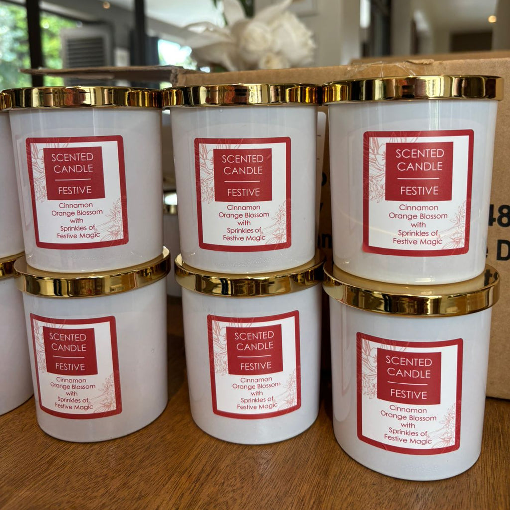 Transform your space into a warm, inviting sanctuary with our Cinnamon & Orange Blossom Luxurious Candle. This beautifully crafted candle releases a captivating blend of spicy cinnamon and delicate orange blossom that fills your room with an enchanting aroma